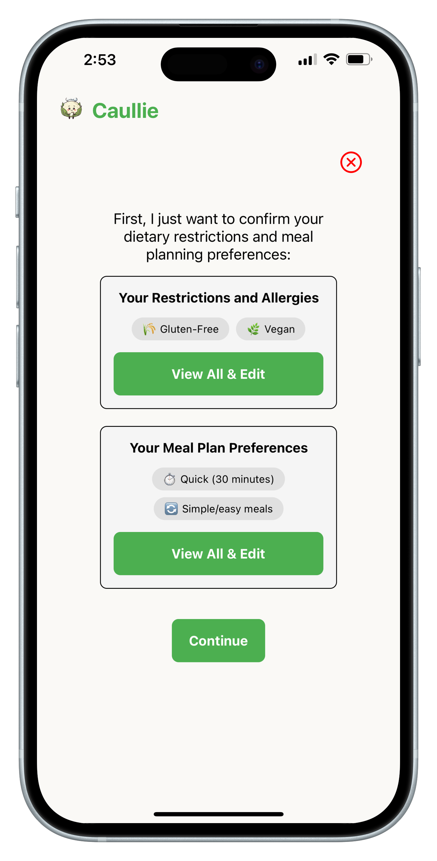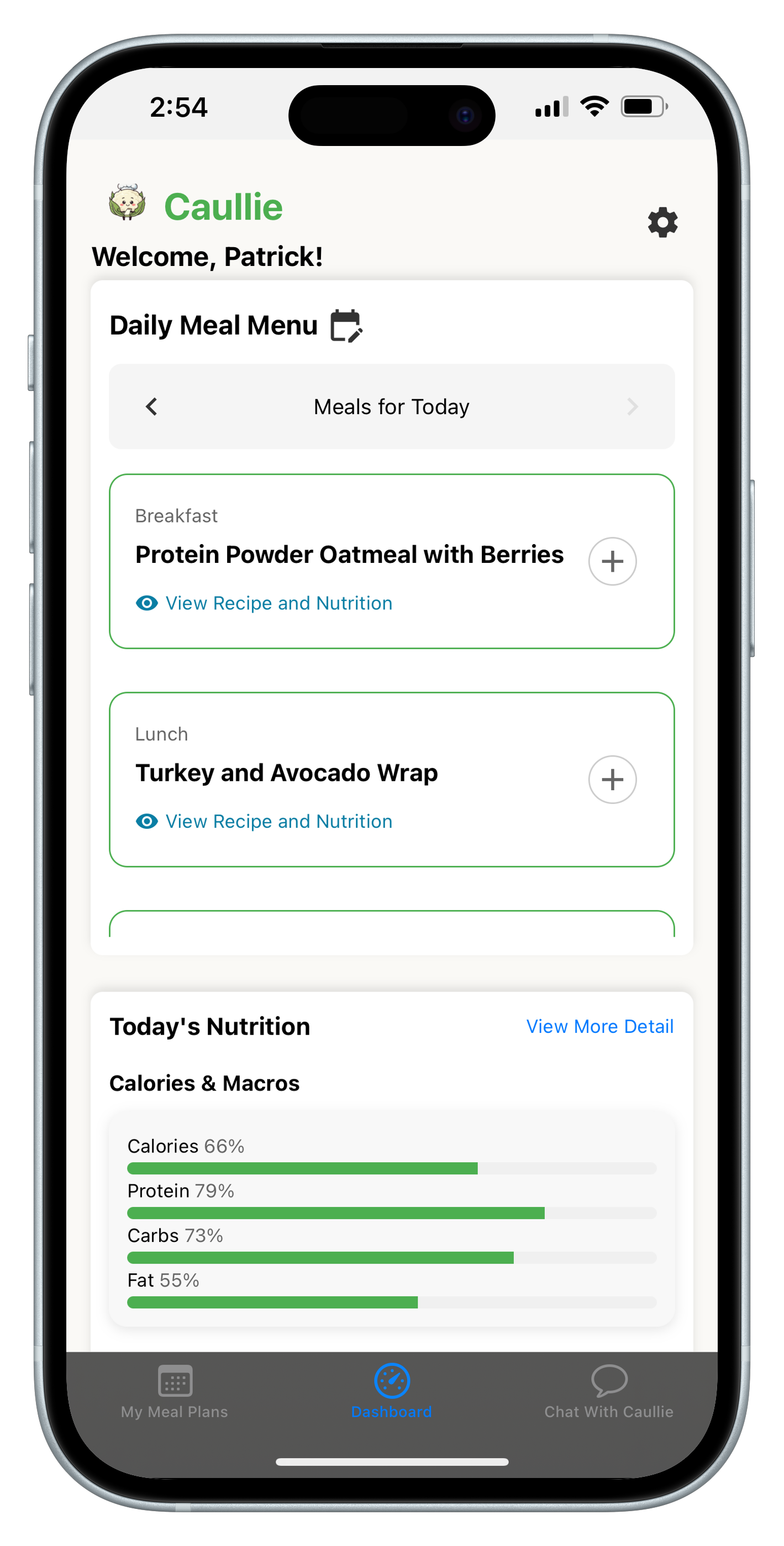 ✓ Made For You – Caullie incorporates your ingredient requests, dietary needs, and lifestyle factors into your meal plans.